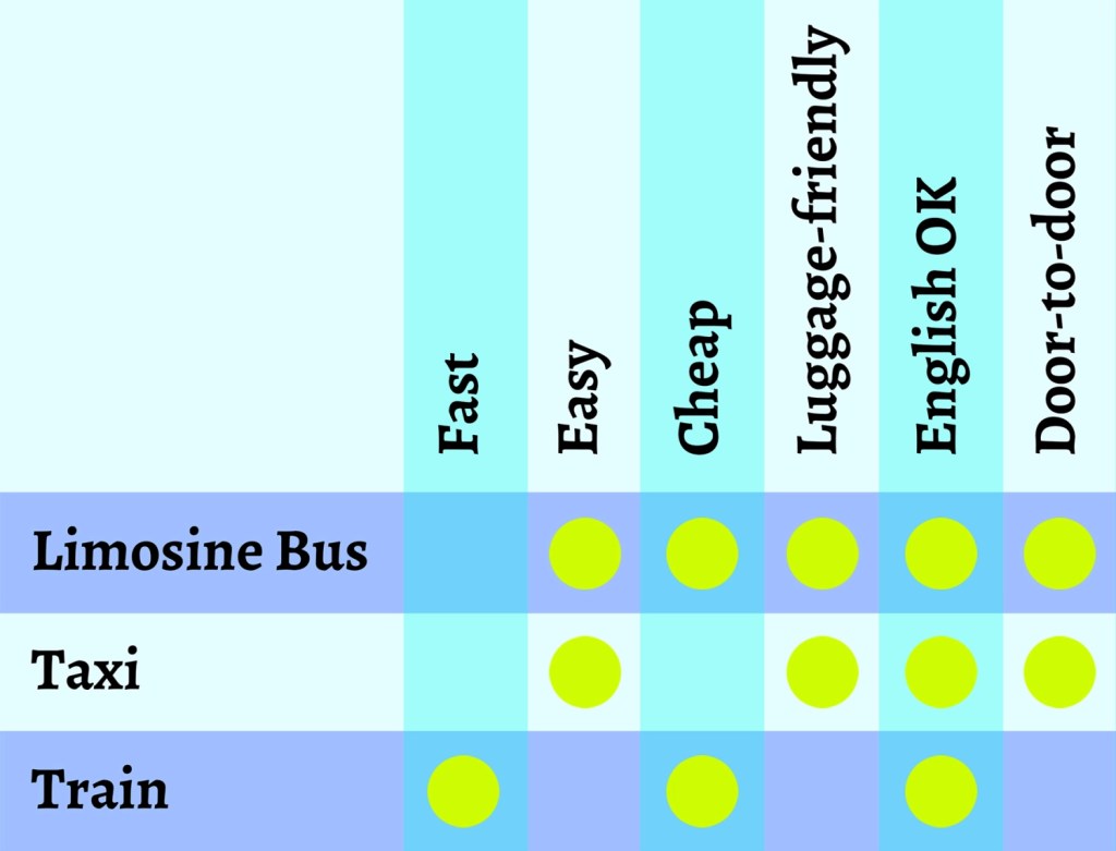 But sadly, there’s no time to move it before you come. Depending on how much luggage you have, where you’re staying, and how much you want to spend, here are the options for getting into Tokyo from the boonies: