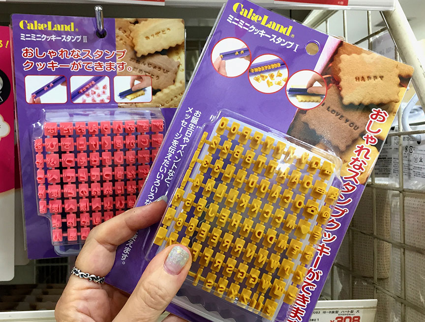 There’s a long aisle of Japanese and Western kitchen gadgets for bargain prices, including these cookie stamps that I use pretty much every chance I get