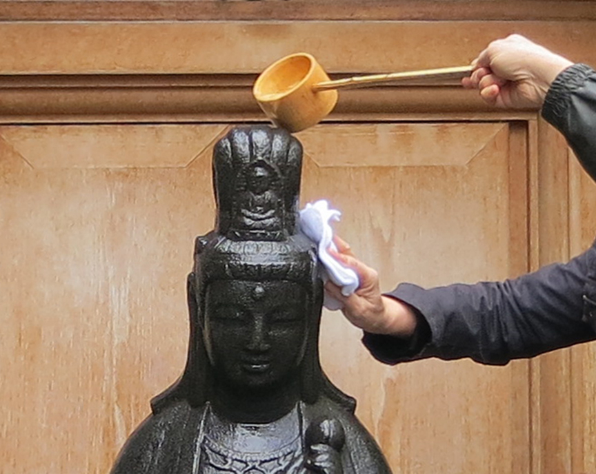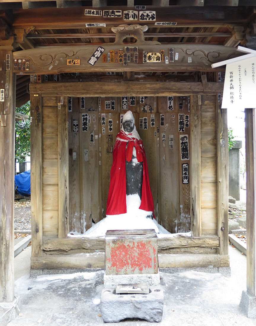 Because good health is one of the oldest requests made to the powers-that-be, all-purpose healing figures are not uncommon in Japan (I know of others at Nishiarai-daishi temple, and at the Kamakura-gu Shrine in Kamakura) and while the method of asking for healing varies slightly, you can figure it out by standing aside and watching others before stepping up and doing it yourself.