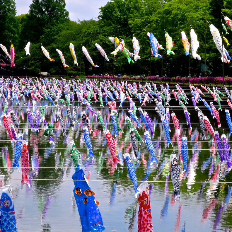 Children’s Day is on May 5th, but the month before is best time to spot ’em. This holiday used to be known as Boys’ Day, and koi nobori were only flown outside the homes with sons, but now that it’s been expanded to Childrens’ Day, parents hope that all their children will grow up to be like the carp that legendarily climbed a waterfall to become a dragon.