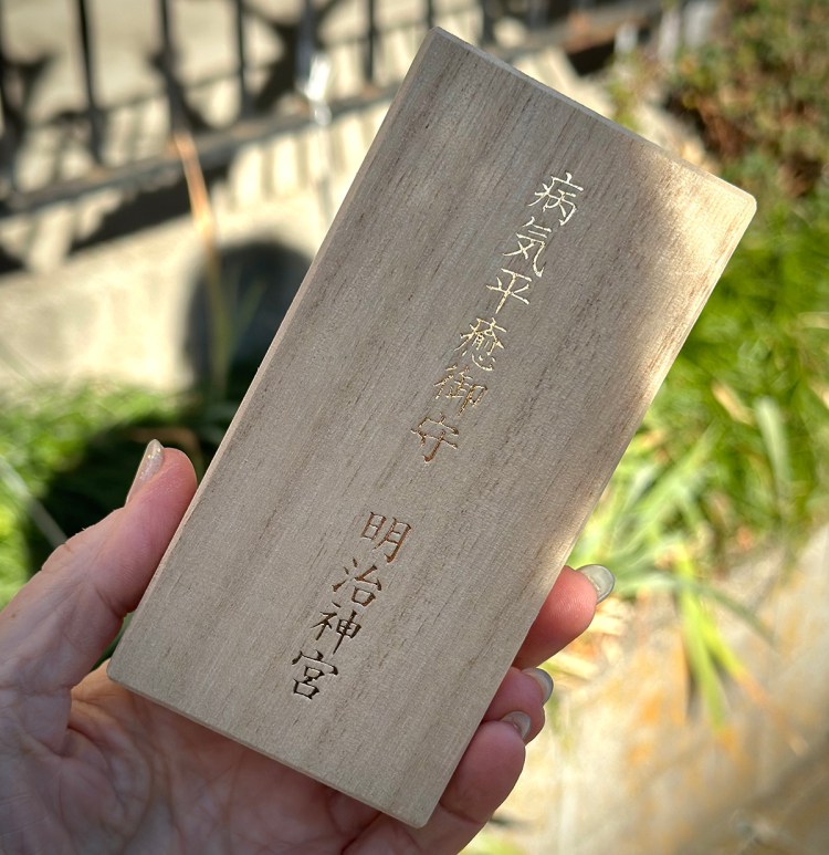 Each o-mamori has a specific purpose—children carry the “safety-in-traffic” one to protect them on their way to and from school, students carry the “do well on examinations” amulet into every test, and so forth—but the one you want for your ailing loved one is called “byōki heiyū” (pronounced byō-key hey you). It harnesses the power of the temple or shrine to heal someone who is sick.