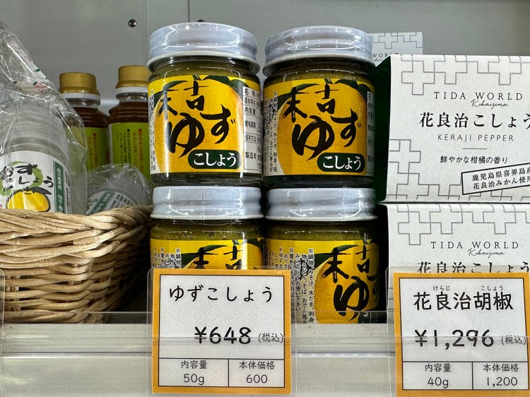 Another thing I bring back in great quantities is this yuzu koshō. This tiny condiment jar really packs a punch—it’s used kind of like harissa, but delivers a spicy Japanese taste of yuzu citrus and togarashi peppers.