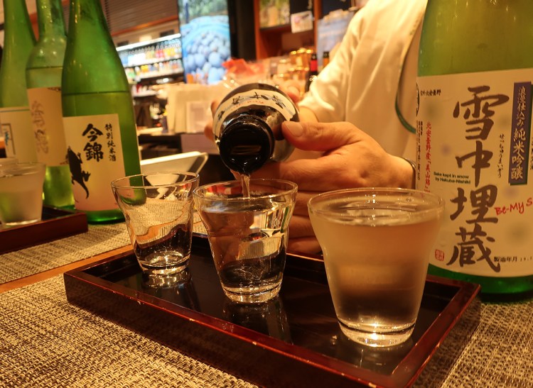 Not gonna lie—Nagano has great food (and you can’t go wrong buying anything in this shop) but its biggest draw is that the region really is known for its excellent sake, and to prove it, they have a sake tasting bar on the second floor. You can order drinks of some premium types from the bartender behind the counter, or a few hundred yen, buy coins that allow you to self-serve and taste up to six different sakes.