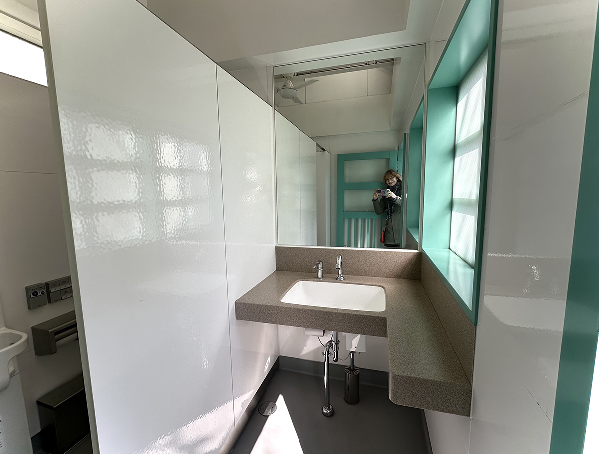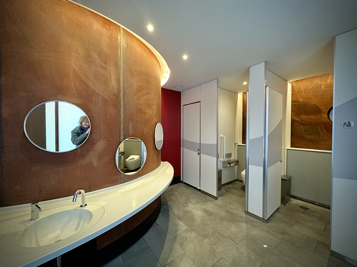 Not all the architects employed their designerly skills on the facilities inside, but this one is worth a look, because it’s so much nicer than most public bathrooms.