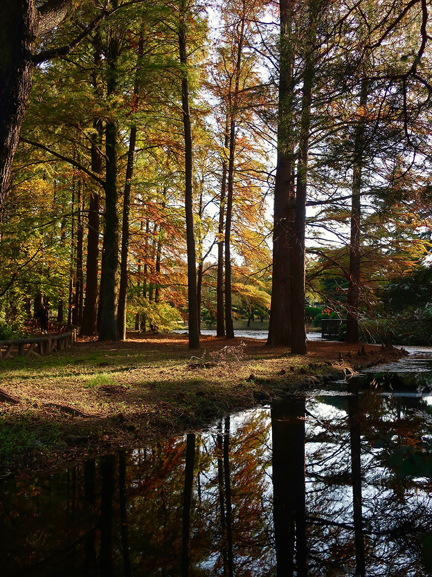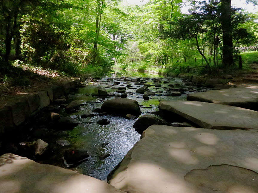 Jindai is especially nice to stroll through on the hottest days of summer, because the forest stream that meanders through the middle of the garden is a refreshing walk, with steppingstone bridges criss-crossing it along the way.