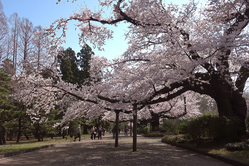 As the regular cherry blossom varieties begin to open in late March to early April, Jindai’s enormous specimens are still blooming strong, despite having passed their three-hundredth birthdays.