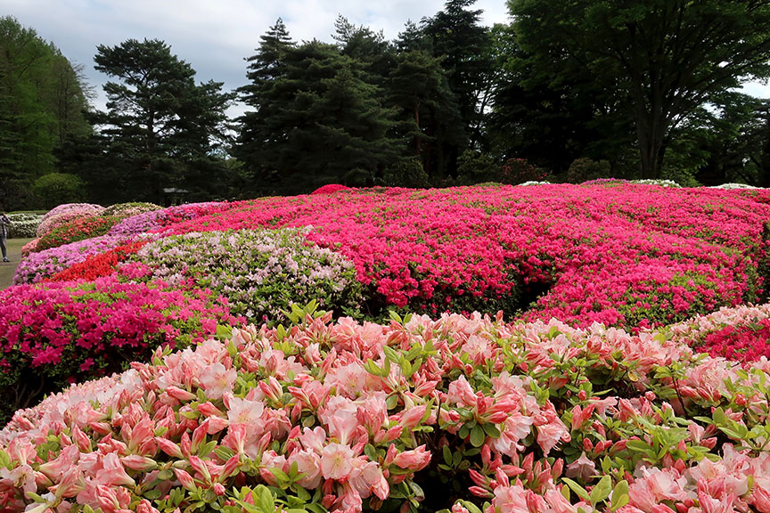 Once the cherry blossoms finish, it’s time for azaleas to take the stage. These are what drew me to this garden in the first place—I used to measure azaleas by the standard of the azaleas at the Imperial Palace’s Ni-No-Maru garden, but these are not only far more varied…