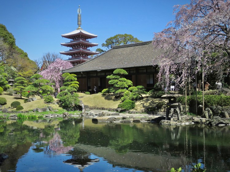 This jewel of a garden is a little oasis amid the bustle of Tokyo’s biggest temple, and a wonderful place to see gorgeous weeping cherry trees alongside that iconic red pagoda.