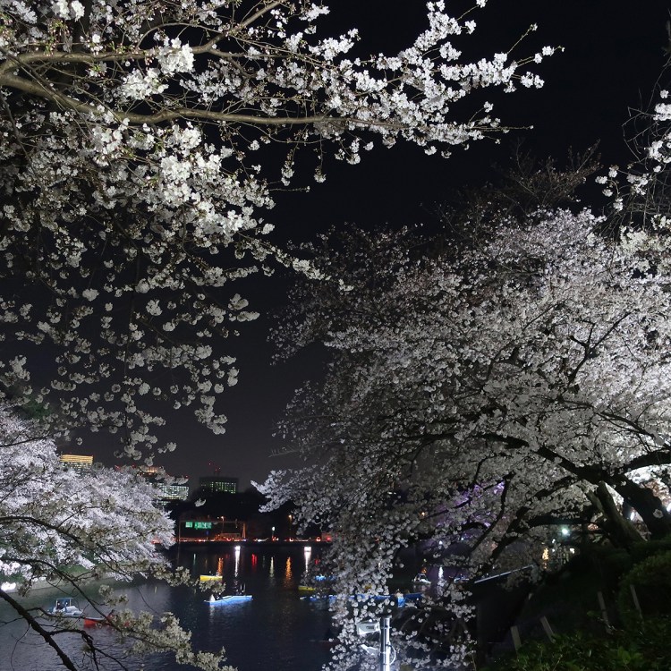 The moat trees are lit up at night until 22:00 during cherry blossom season
