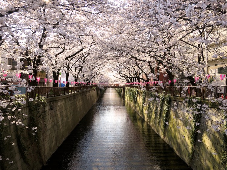 Across the street from Nakameguro Station, the Meguro River becomes an amazing tunnel o’ bloom during cherry blossom season…