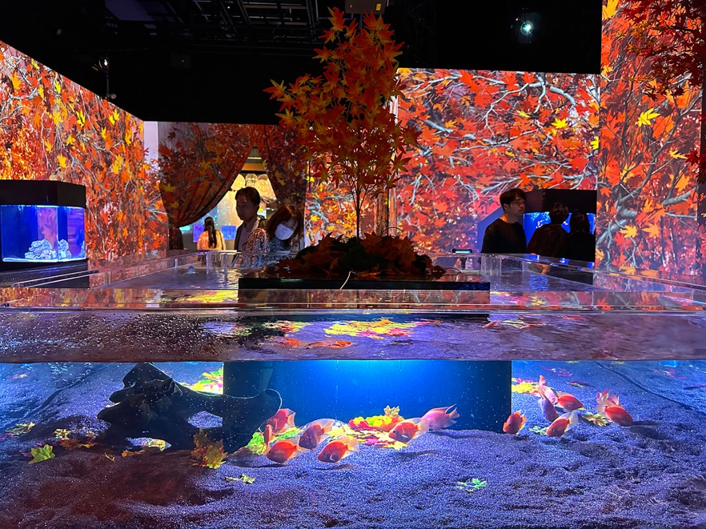 The first galleries are a collaboration with digital artists Naked, Inc. and feature sea creatures in pristine tanks paired with seasonally changing scenery. Autumn rushes in with whirling leaves…