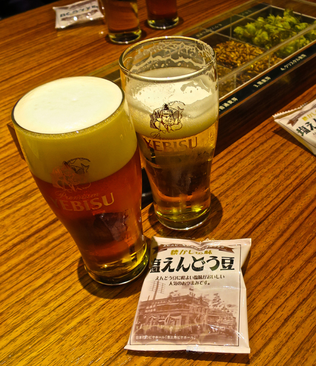 The ¥500 tour comes with a short walk through the historical photos, a lesson on how to pour the perfect beer, and (best of all) two samples of fine Yebisu wares