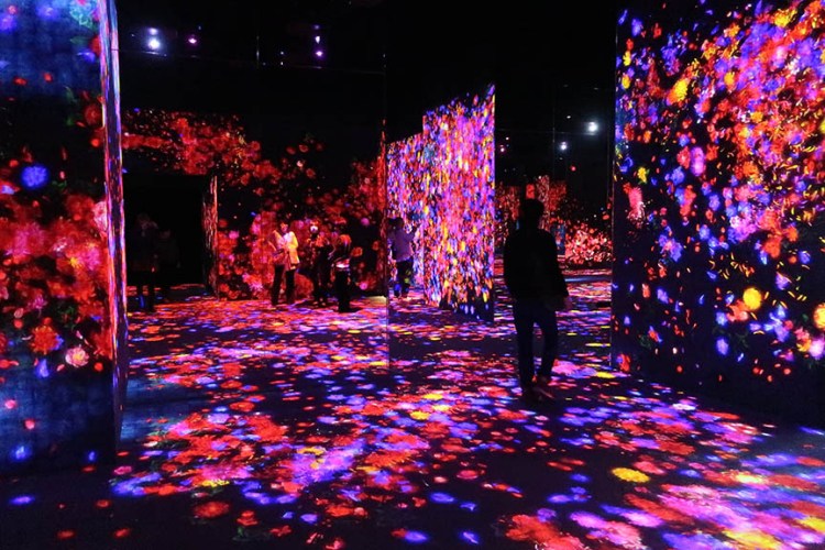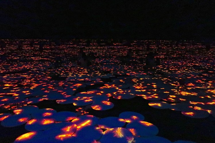 From the blooming and decaying wheel of life in the floral rooms……to the infinite glowing and extinguishing lanterns of the Forest of Resonating Lamps……to the swift flow of the seasons over a river of lilypads……this digital experience is worth every yen.