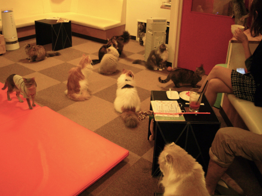 Most of them are purebred – Maine Coon, Abyssinian, Munchkin, Persian, Scottish Fold, Tabby, etc. plus a few typical Japanese calicos with half-length tails