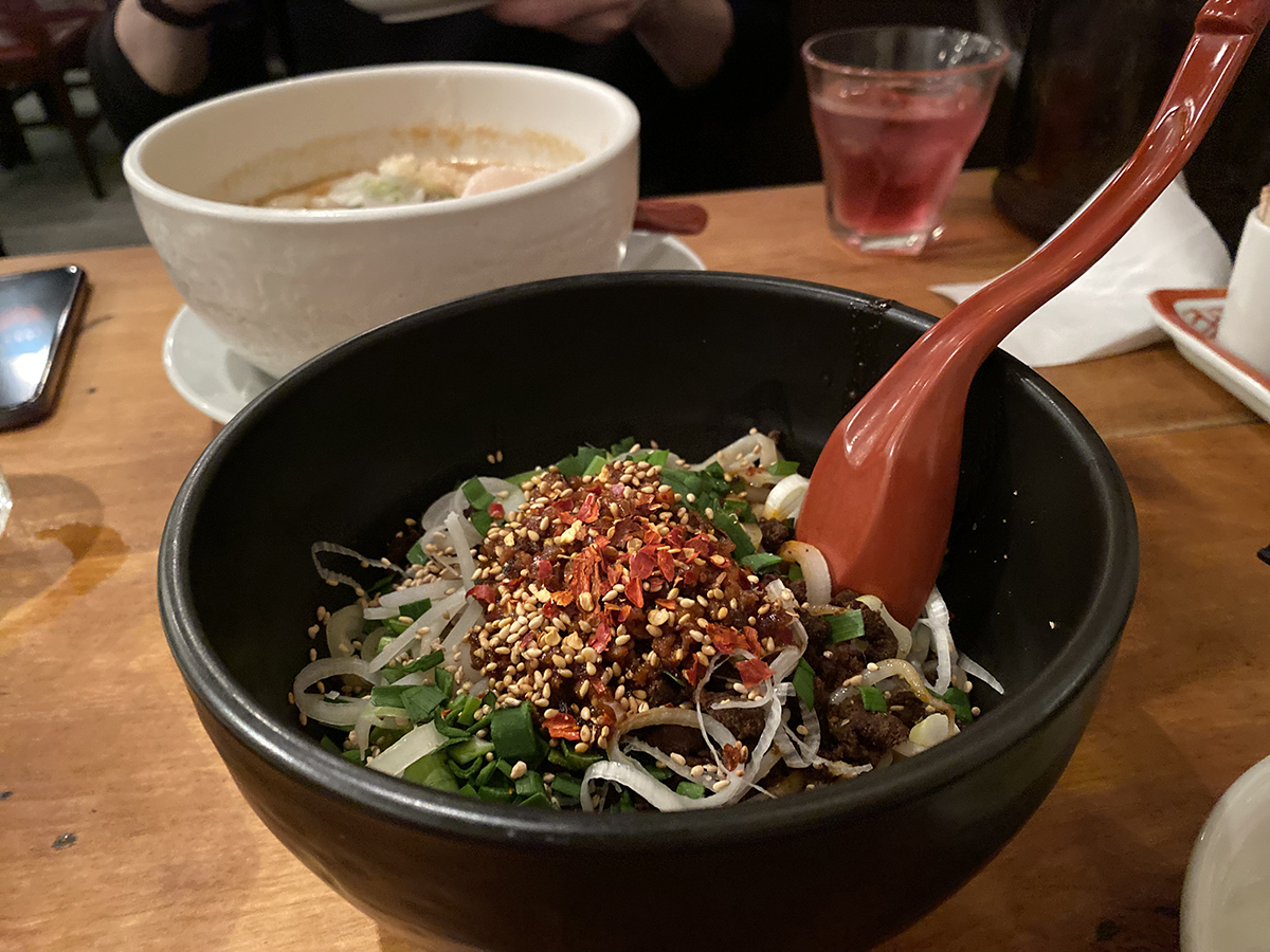 What we always order: Get the tsukemen version (noodles with dipping sauce) or the shiru-nashi ramen (without broth) for super intense spicy goodness