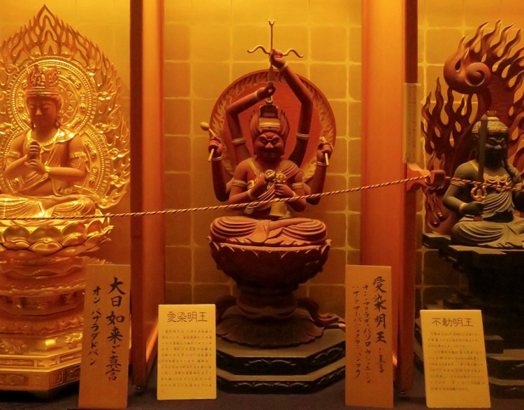 as well as many fine figures of Fudō-san, whose scary expression and fearsome weapons are aimed at evildoers, not you!