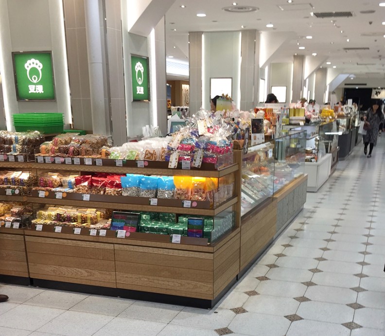 Floor B-1 sells all the desserts, tea, traditional sweets, and fresh take-out savory foods from famous makers all over the country. Skewered chicken, tempura, barbequed eel and more, all the best of the best. Everything looks so delicious, it’s like an art museum of every food imaginable!