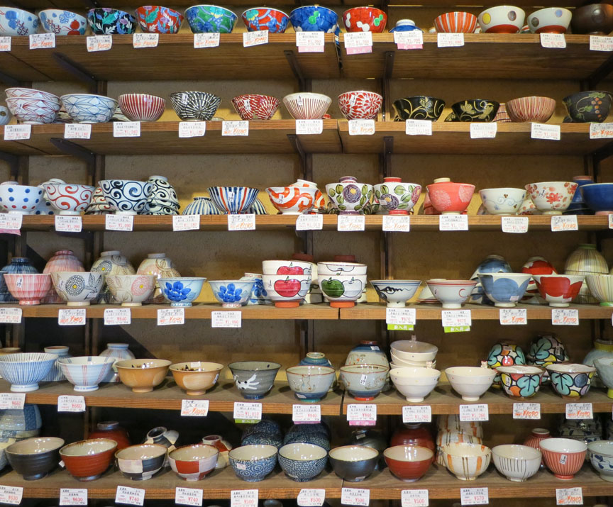 There are shops specializing in handmade ceramic dishes, serving plates, teapots and more. One good thing about buying in Kappabashi is that you can get any number of plates/glasses/cups you need instead of being confined to the sets of five they sell in regular stores.