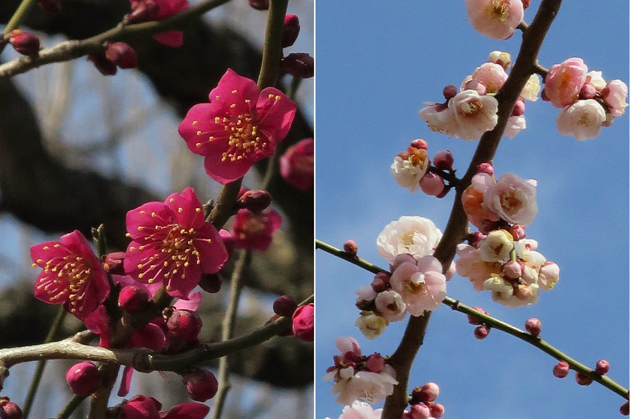Plum blossom season kicks in with rare beauty when everything else is still bare and brown, and the ancient plum grove here has some beautiful varieties
