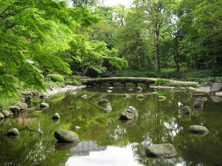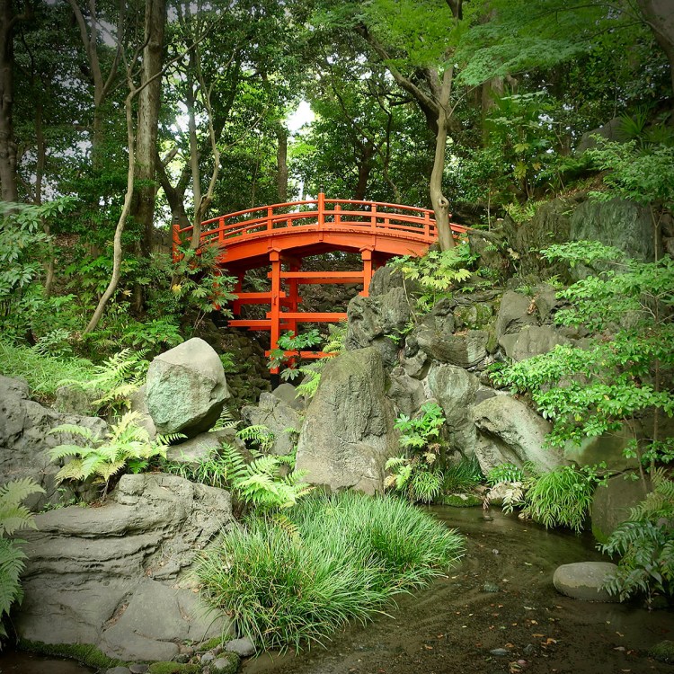 …because there are beautiful intimate landscapes around every corner. It’s big enough to spend an hour meandering through the glades and is especially known for its oh-so-Japanese bridges. This mossy beauty is one of the first ones you cross…