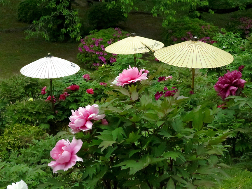 Peonies are next, and a hillside of blooms as big as your head sprout umbrellas to protect them from the warm spring sun