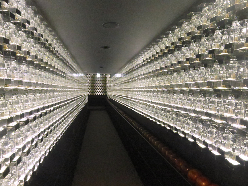 Inside is a fantastic winding corridor lined floor to ceiling with 10,000 crystal figures of Fudo-san. See the 108 giant round beads on the wall? It’s a huge Buddhist rosary, and the devout can pray as they walk along, beneath the gaze of the many Fudo-sans.