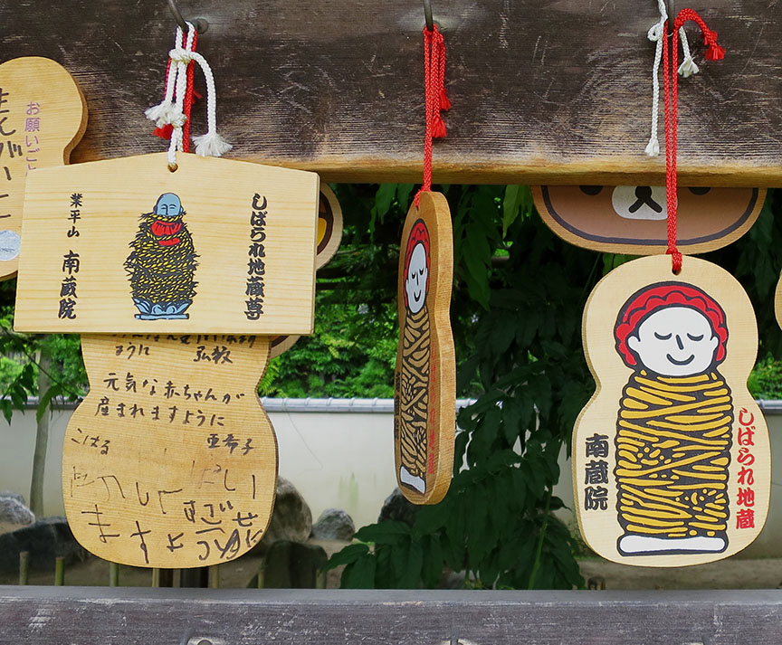 If you’d like to ask the Jizo-san for another favor, buy one of these adorable ema prayer plaques and write your wish on the back before hanging it on the rack