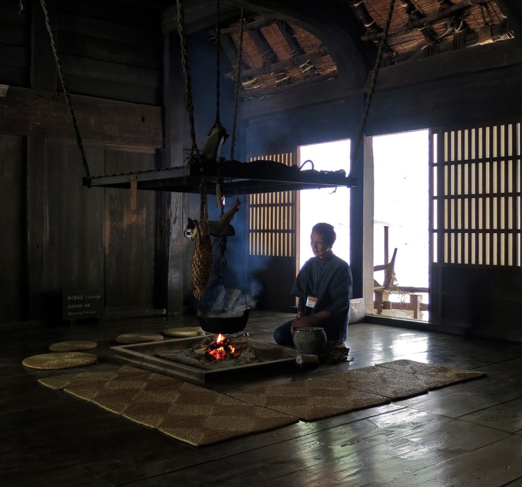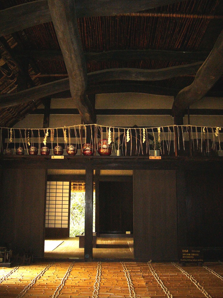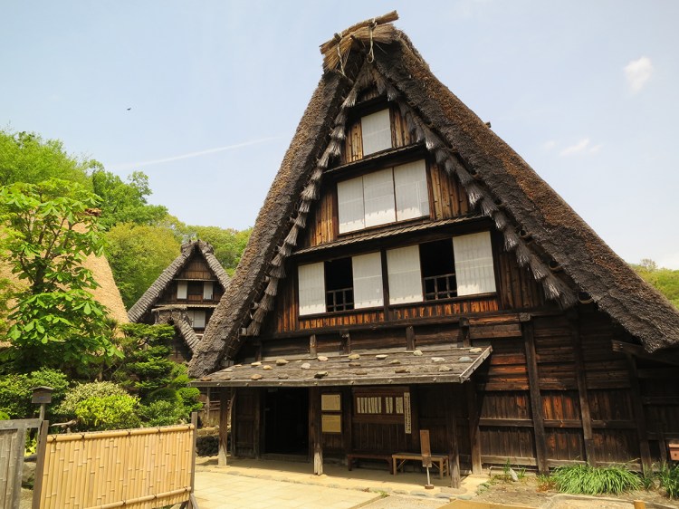 That gives you some idea of the interesting factoids delivered by the signs pointing out the features of every house (in English). Others tell of puzzling architecture features, like roofs weighted with stones or tiles to protect them from blowing off in the regular typhoons that roar through the parts of Japan where those houses were originally built.