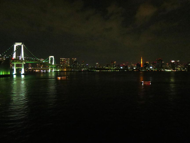 Previous Image Next Image rainbowbridge5 From the North Promenade, you can see the lights of the city and Tokyo Tower.