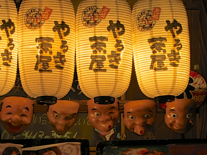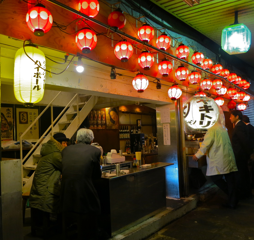 After we wander around looking into all the fun shops, we’ll be ready for some food-bevs and entertainment. There are sidewalk signs pointing the way up to bars and eateries on the upper floors along all the streets and alleys. Unlike the tiny bars in Shinjuku’s Golden Gai, in Shimo-kita the places without live music usually don’t have a cover charge. Plus, they’re more relaxed about welcoming non-Japanese as well as locals. It’s unlikely you’ll find anyone who speaks English, but it’s not really necessary – eating, drinking & merrymaking are a universal language.