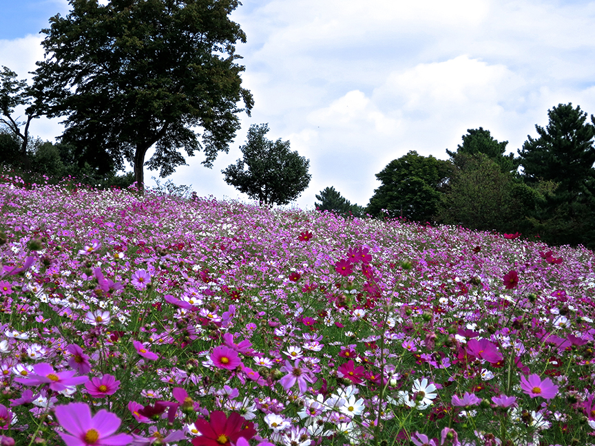 Previous Image Next Image ShowaCosmos Showa Kinen is known for grand displays of seasonal color, like this field of cosmos in September.