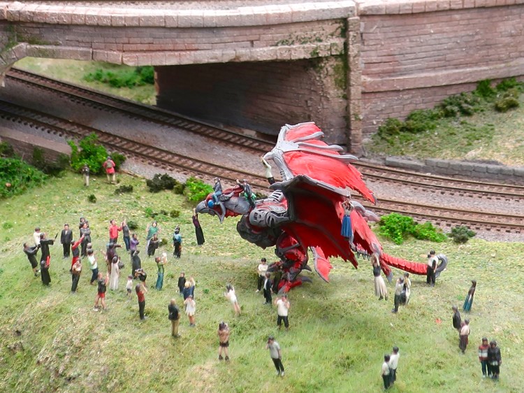 and the dragon that just landed outside Europeville is soon surrounded by a horde of people daring each other to do dangerous stunts and snapping selfies with it.