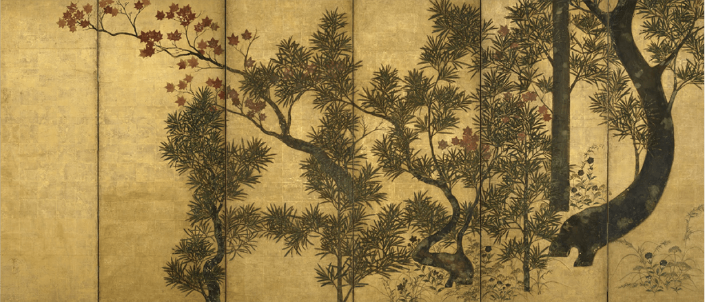 “Chinese Black Pines and Maple Trees” by Tawaraya Sōtatsu, photo courtesy of Google Arts & Culture